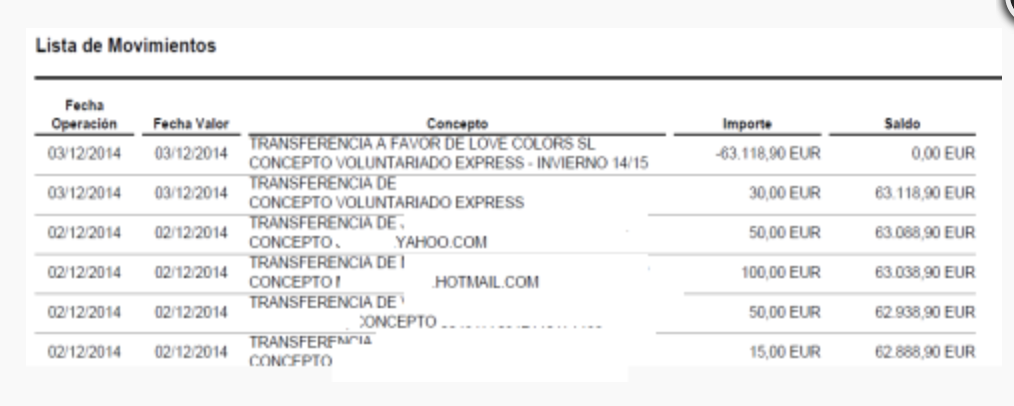 Aquí podéis descargar los PDF de los movimientos en la cuenta corriente (los nombres de las personas que han hecho Donaciones están tachados para dar confidencialidad), así como las facturas de las compras.