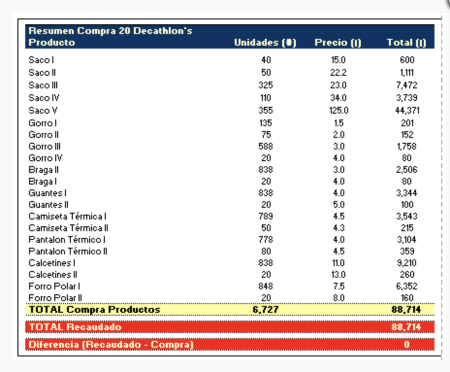 A continuación os detallo lo que pudimos comprar y repartir gracias a TU COLABORACIÓN EN EL VOLUNTARIADO EXPRESS (si queréis mayor detalle, en este LINK tenéis más información en la pestaña “Facturas & Cuentas 17/18”, donde aparece compra detallada en Decathlon, factura escaneada y un detalle de la cuenta corriente con todas las aportaciones que entraron – veréis que los nombres están tachados para darle confidencialidad a las aportaciones).