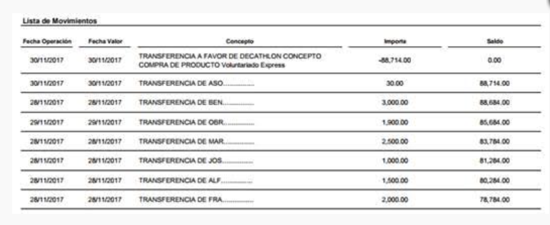 Por último, en relación a la parte de Facturas & Cuentas aquí tenéis la parte final del extracto de la cuenta de la Fundación ihelp (encargados de la plataforma de pago)